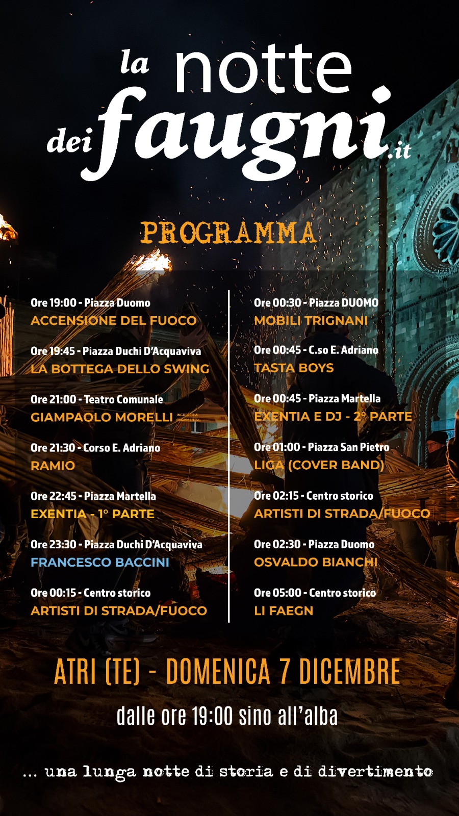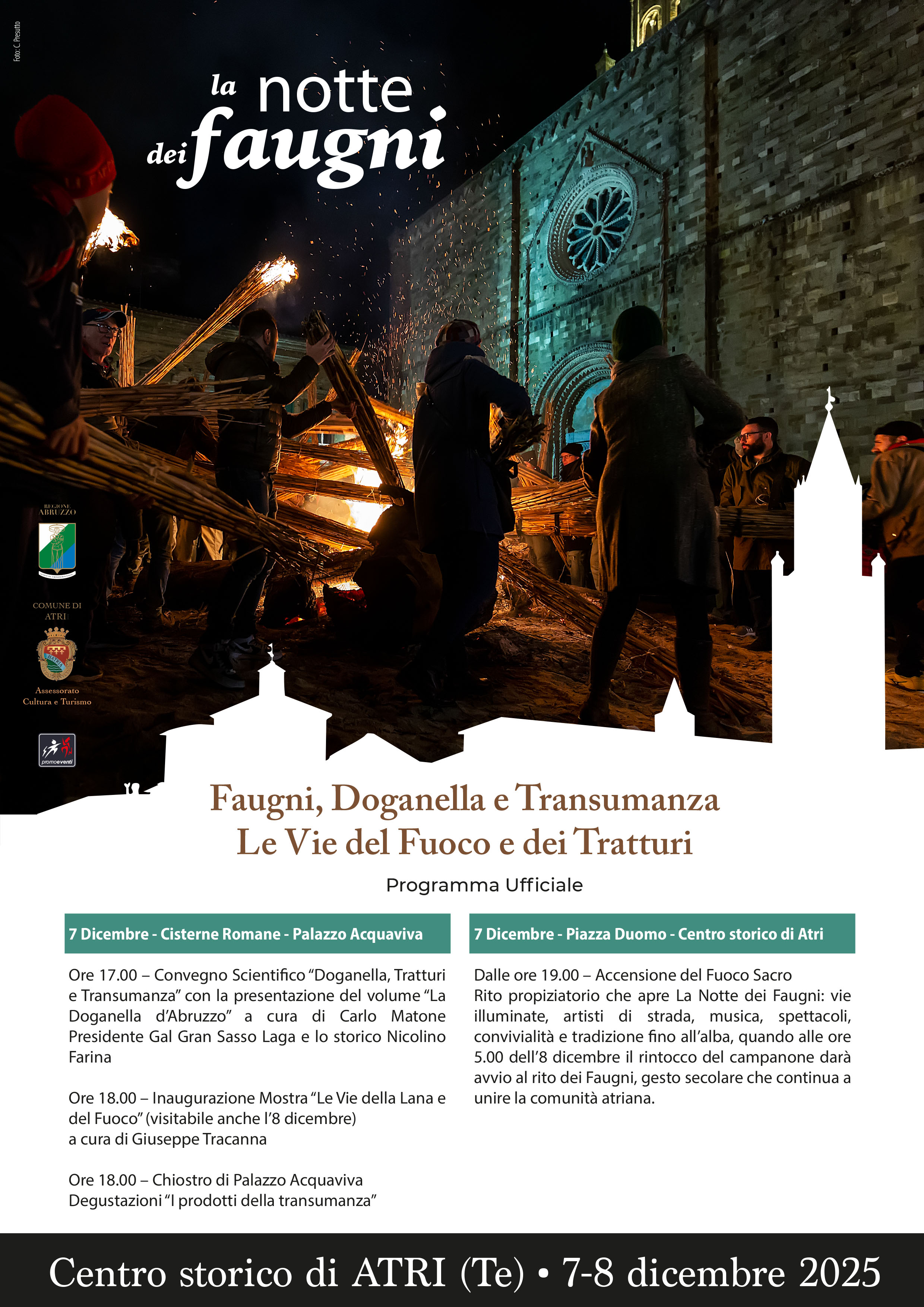 Alle ore 5:00 dell’8 dicembre il rintocco del campanone darà inizio al rito dei Faugni, gesto secolare che unisce la comunità atriana.
